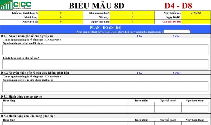 Nếu doanh nghiệp Anh/Chị đang gặp khó khăn trong việc lập Báo cáo 8D Problem Solving theo chuẩn quốc tế, hoặc muốn nâng cao năng lực đội ngũ QA/QC trong xử lý sự cố chất lượng, hãy kết nối ngay với CiCC – Continuous Improvement Consulting Company.